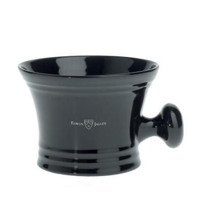 Фарфоровая чаша для бритья Edwin Jagger RN46 с ручкой для более удобного хвата мокрыми руками, цвет - чёрный. Чашами похожей формы на протяжении многих десятилетий пользовались и продолжают пользоваться в традиционных английских барбершопах. Увеличенная высота краев чаши позволяет формировать большое количество пены без страха расплескать ее через края.