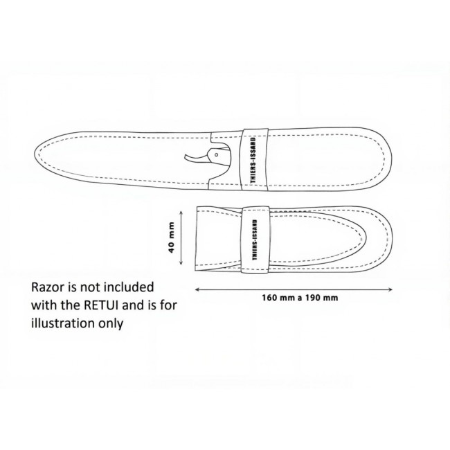 Роскошный коричневый чехол для опасной бритвы Thiers Issard из телячьей кожи с застежкой-клапаном — идеальный аксессуар для защиты вашей бритвы. Этот элегантный чехол изготовлен из высококачественной телячьей кожи и украшен логотипом Thiers Issard спереди. Застежка-клапан надежно фиксирует бритву и защищает её от повреждений. Этот чехол — незаменимый аксессуар для тех, кто ценит свою бритву и хочет сохранить ее в идеальном состоянии. Он универсального размера и подходит для бритв от 4/8 до 7/8 дюйма.