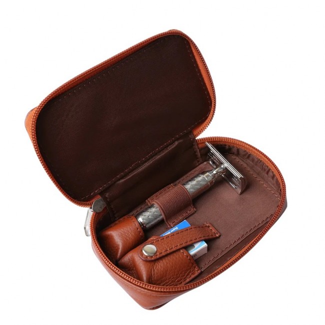 - кожаный чехол коричневого цвета - вмещает 1 бритву и 1 комплект лезвий;