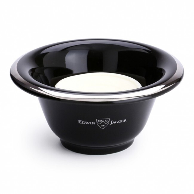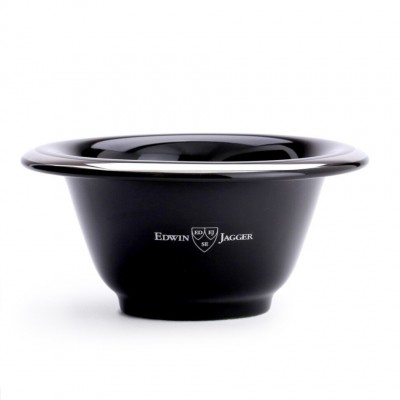 Миска для бритья Edwin Jagger RN116 с элегантным, классическим дизайном, служит для создания пены из мыла либо крема. Изготовлена из высококачественного фарфора, чёрного цвета, фарфор дольше держит тепло, имеет широкий козырёк с красивым серебряным ободком.