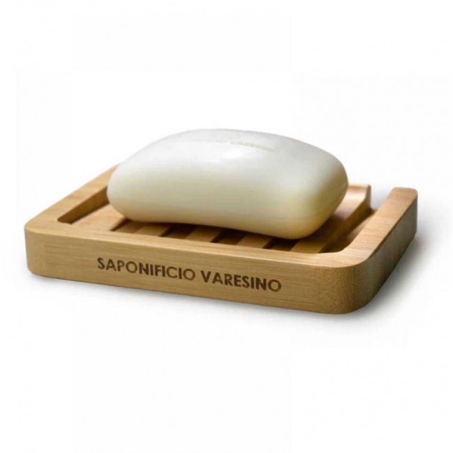 Saponificio Varesino Porta Sapone - элегантная мыльница из бамбукового дерева с каналами для стока воды. Логотип SAPONIFICIO VARESINO выбит спереди. Мыло не входит в комплект. Мыльница из бамбука компактная и легкая. Не боится влаги.