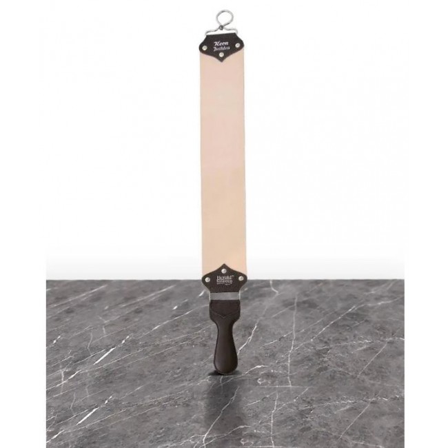 HEROLD 195J — это профессиональный ремень для правки опасных бритв, изготовленный из высококачественной немецкой юфти. Благодаря ширине 8 см ремень позволяет обрабатывать всю поверхность лезвия за одно движение, что значительно упрощает процесс правки.
