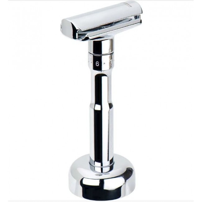 - Дизайн: Высококачественное хромированное покрытие добавляет элегантности вашему набору для бритья и подходит к дизайну модели MERKUR Futur 701.