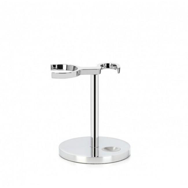 Стенд универсальный для помазка и бритвы MUEHLE RHM UNI - классическая модель подставки из металла с хромированной отделкой, устойчиво стоит на поверхности. С ее помощью вы можете хранить различные комбинации аксессуаров, состоящих из бритвы и помазка.
