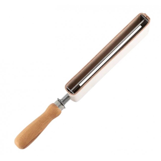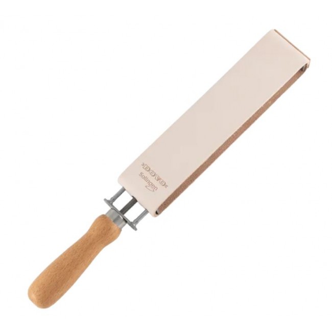 Строп для правки опасной бритвы Dovo Solingen 186210011 представляет собой двухсторонний ремень с деревянной ручкой для удобного использования. Механизм регулировки натяжения изготовлен из нержавеющей стали. Кожа на ремне растительного дубления (коровья кожа). Строп упакован в картонный чехол-футляр, который предназначен для его хранения.
