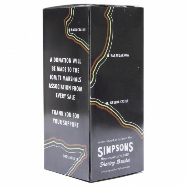 Эта кисть отдает дань храбрости гонщикам, которые проходят культовую и всемирно известную горную трассу. Помазок имеет отполированную до блеска чёрную ручку, выточенную на токарном станке, с логотипом Isle of Man TT и наполненную синтетическим волокном уникального производства от Simpson, обеспечивающим максимально комфортное бритье.