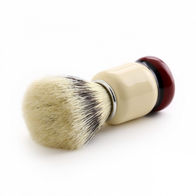 Semogue 1438 разработан для любителей помазков с выраженным массажным эффектом. Помазок имеет ощутимо упругий, но не колючий узел. Он вяжется вручную из высококачественной щетины кабана класса "Extra 75% tops", самой жёсткой в линейке производителя, с великолепным массажным и отшелушивающим эффектом, и идеальной пеногенерацией как в чаше так и на лице. Нанесённая на ворс чёрная полоса придаёт кисти настоящий барсучий вид.