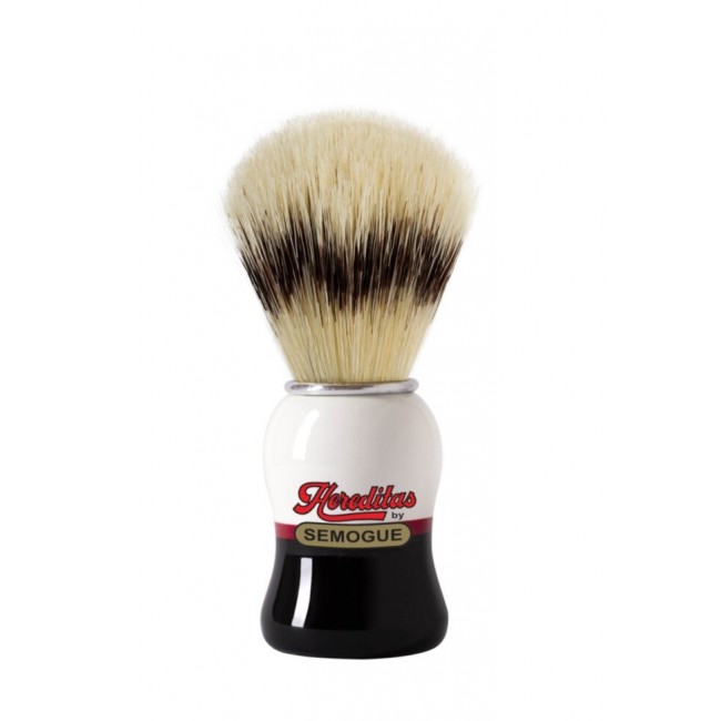 Помазок для бритья Semogue 1520 имеет прекрасный винтажный дизайн и является одним из самых знаковых помазков от Semogue. С ручкой из окрашенного в бело-чёрный цвет с красной полосой бука и узлом диаметром 21 мм из натуральной щетины кабана. Нанесённая на ворс чёрная полоса придаёт кисти настоящий барсучий вид.