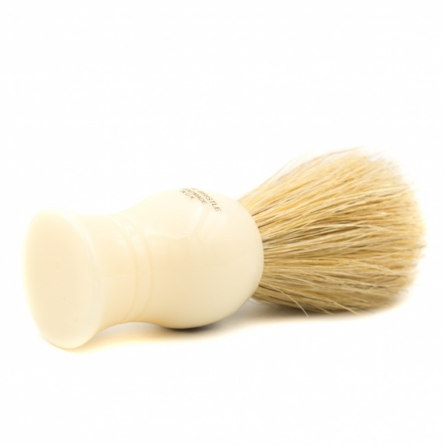 Помазок для бритья Vulfix VS/1 Pure Bristle - настоящий пример английской классики, идеально подходит в качестве первого помазка для начинающих поклонников классического влажного бритья. В данной модели используется щетина кабана. Щетина кабана жестче, чем барсучий ворс, и обеспечивает отличный массажный эффект. Эта кисть обеспечит много лет верной службы, помогая Вам достичь идеального бритья. Благодаря плотной набивке ворса этот помазок идеально подходит как для мыла или кремов, так и обеспечит хороший пилинг кожи перед бритьём. Элегантная ручка цвета слоновой кости, дизайн выполнен в классическом английском стиле.