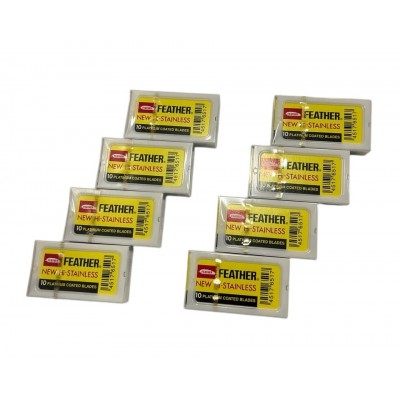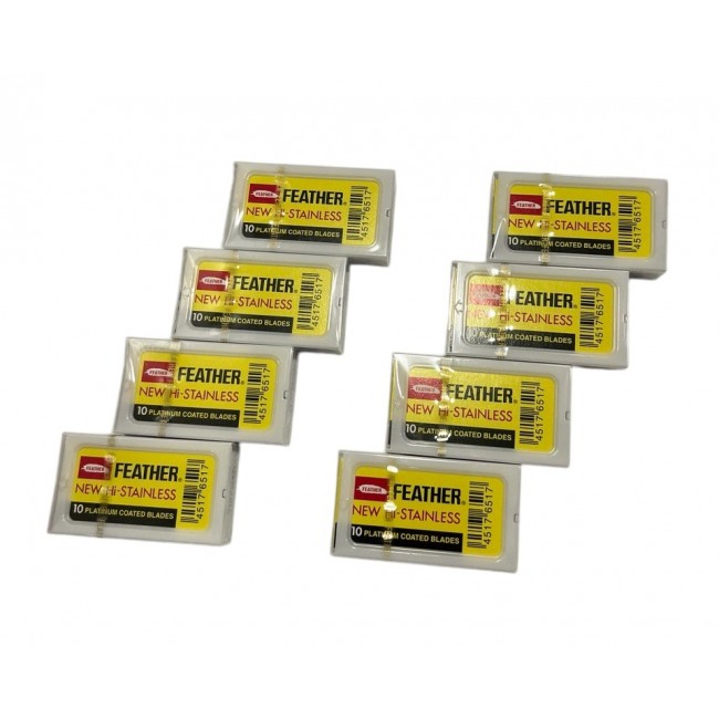 Склад набору: 80 лез Feather New Hi-Stainless (8 пачок по 10 лез у кожній)
