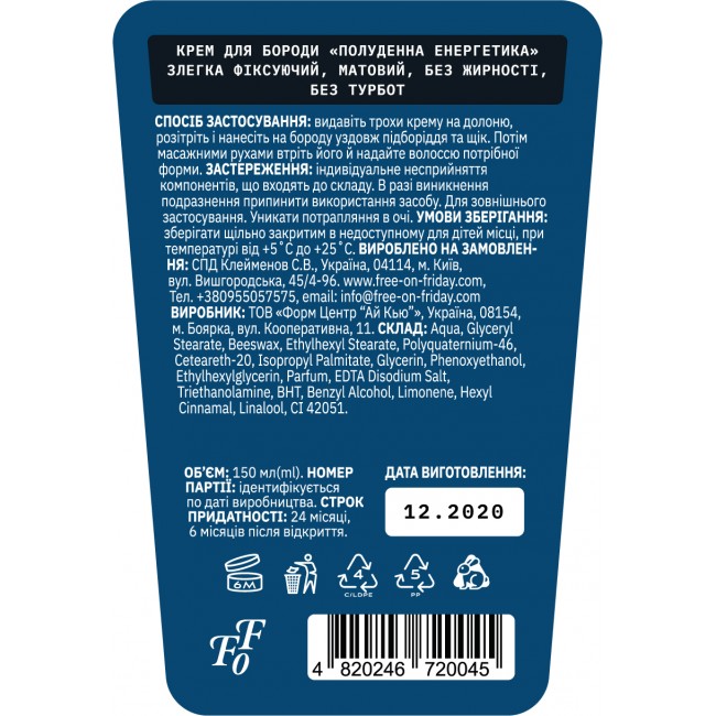 Опис Крем для укладання бороди Free on Friday MIDDAY VIBES, 150 мл