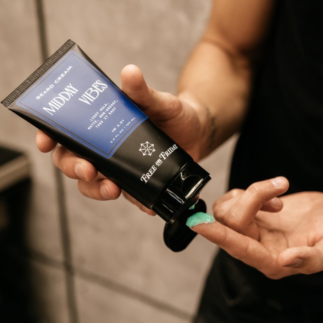 Free on Friday Midday Vibes – професійний крем для укладання бороди. Завдяки активним натуральним компонентам живить, зволожує та пом'якшує волосся та шкіру. Надає бороді презентабельний зовнішній вигляд, дозволяючи укласти належним чином навіть жорсткі та неслухняні волоски. Волосся не блищить і не злипається, борода виглядає ідеально протягом усього дня. Крем легко змивається з рук, не залишаючи плівки на шкірі.