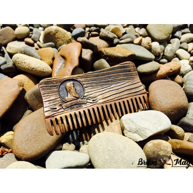 Гребень для бороды "Доска" - это третья работа мастеров из Beard-Hunter. Гребень изготовлен вручную из литой бронзы. Гребень имеет «лесной» дизайн на котором изображен фирменный логотип производителя, который в свою очередь, вырезанный в текстуре древесной коры. Гребень не травмирует волосы. На каждом гребне бренда Beard-Hunter с обратной стороны набита пломба с годом изготовления.